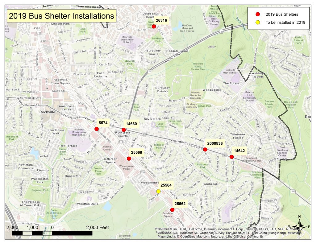 The city recently installed seven new bus shelters to add to the comfort and accessibility of bus stops with high ridership along Rockville Pike, Veirs Mill Road and Taft Street, adjacent to David Scull Park.