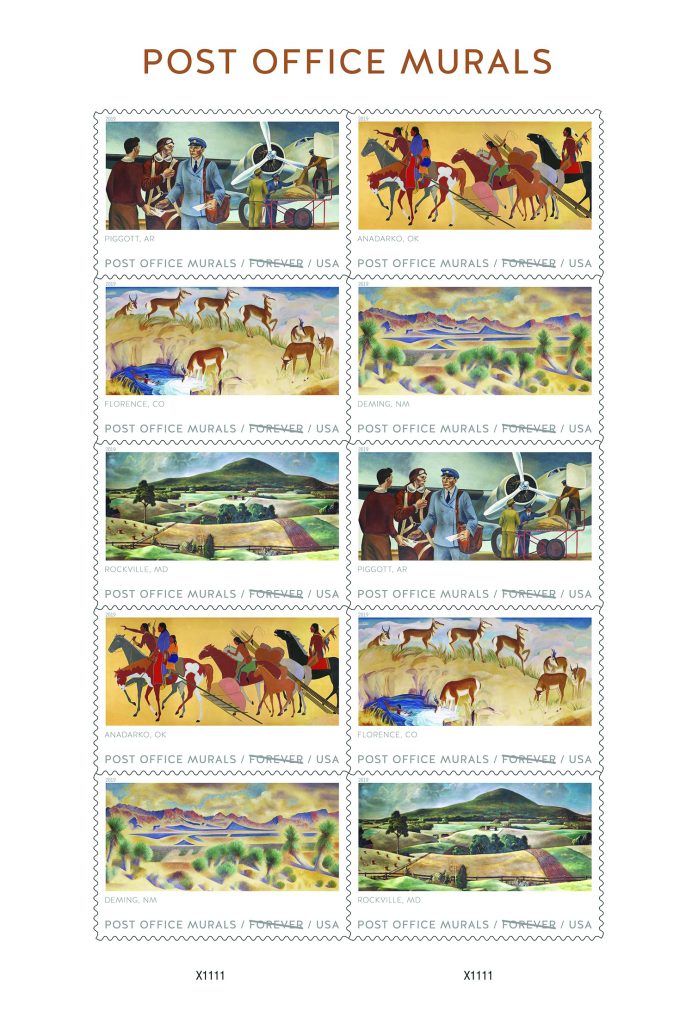The mural of Sugarloaf Mountain (third stamp in first column, above) in the Rockville City Police Department station’s lobby is part of the U.S. Postal Service’s 2019 Forever Stamp series.