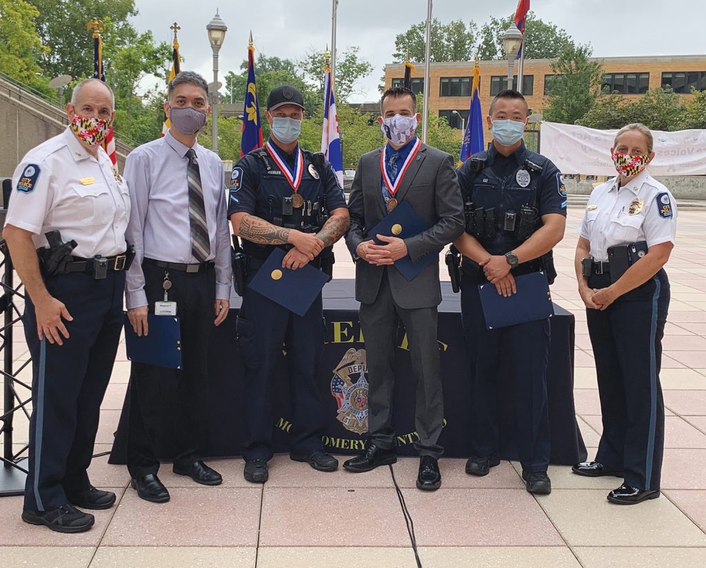 COVID-19 forced the cancellation of the big celebration typically held in June, but that didn’t stop Rockville from honoring members of its police department during a small Public Safety Awards ceremony hosted by the Rockville Chamber of Commerce on Sept. 9 at Veteran’s Memorial Plaza.