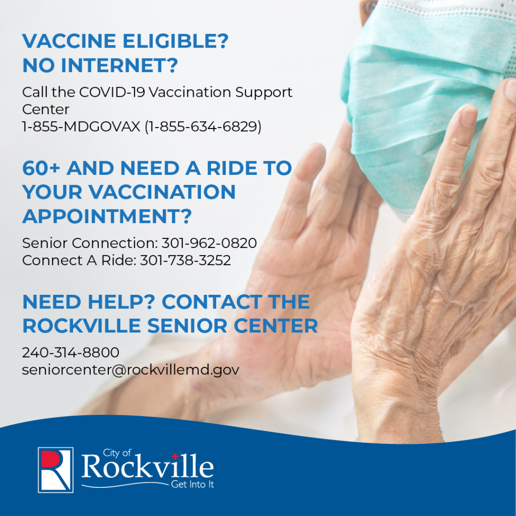 The Rockville Senior Center is also offering preregistration assistance to residents aged 65 and older, by phone at 240-314-8800.