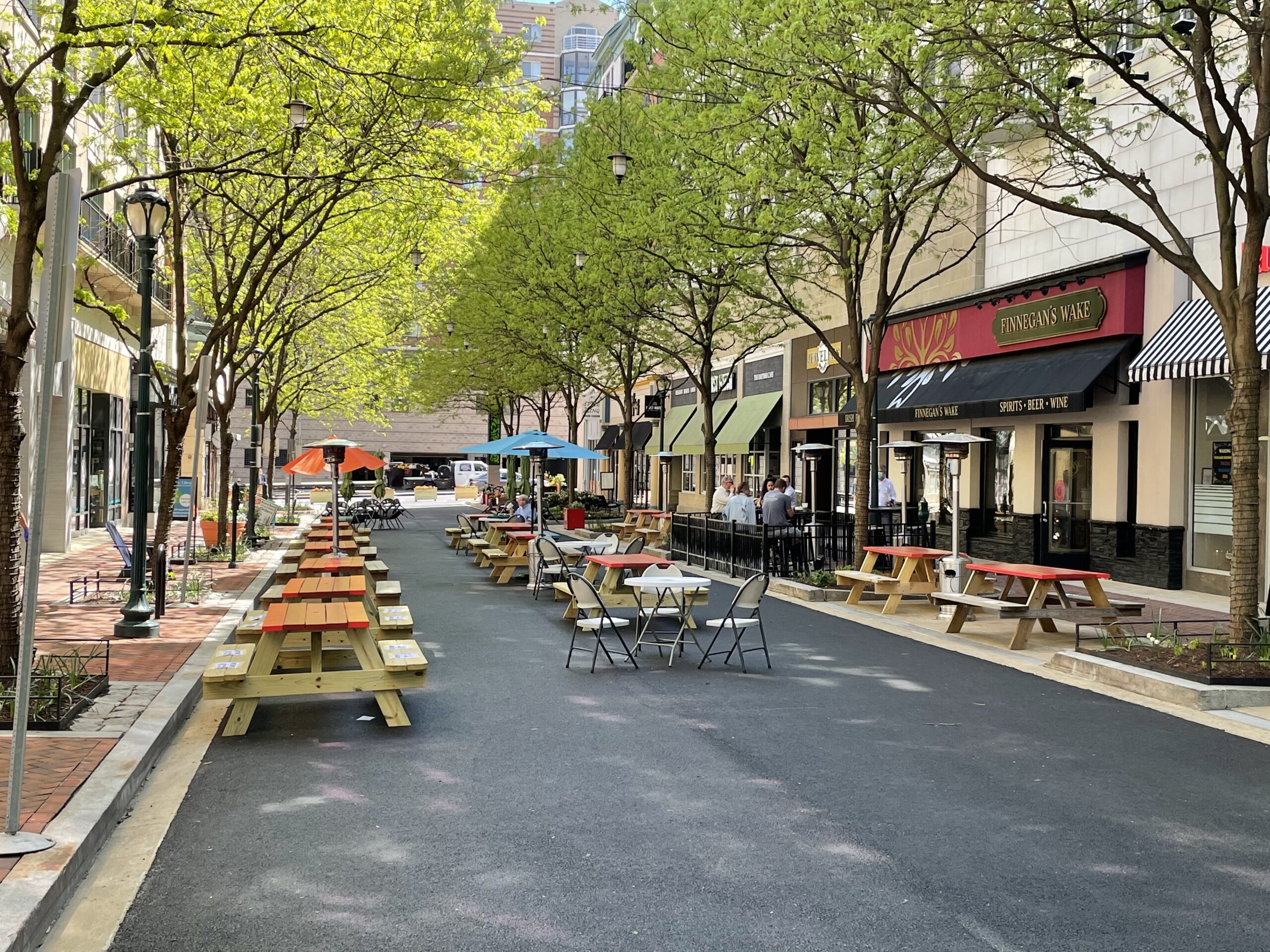 In June 2020, the city closed Gibbs Street, between East Middle Lane and Beall Avenue, and East Montgomery Avenue, between Maryland Avenue and Helen Heneghan Way, to allow for expanded outdoor dining areas. The city also created a permit to allow local eateries to temporarily create or expand outdoor dining spaces on private property and within the city’s rights of way and designated curbside pickup and 15-minute free parking spaces throughout Town Center.