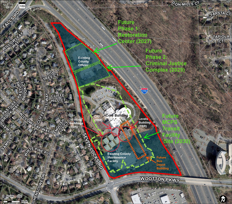 The Mayor and Council oppose the plans, as currently proposed by the county, to house at the site a future Department of Corrections and Rehabilitation Criminal Justice Complex and restoration center, and a Montgomery County Public Schools/Ride On bus depot. The site abuts eight city neighborhoods.